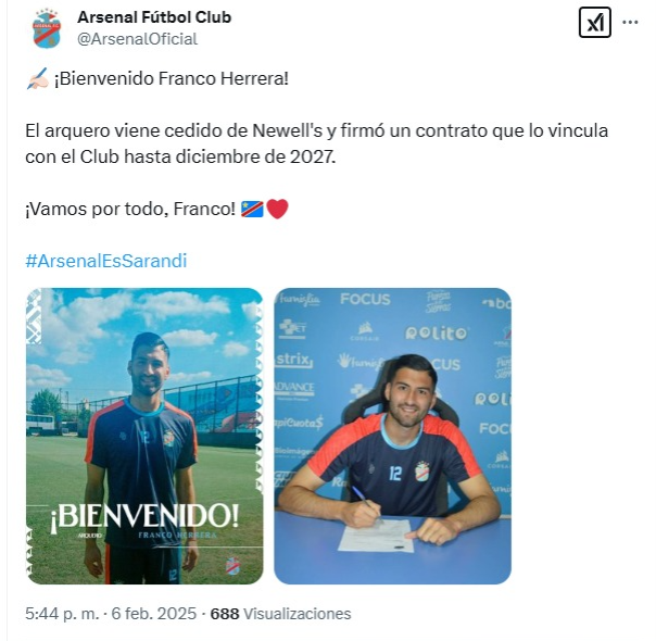 A menos de 24 horas para el debut en la Primera Nacional 2025, Arsenal de Sarandí anunció la contratación de un arquero, que se convierte en la decimosexta incorporación en el mercado de pases.